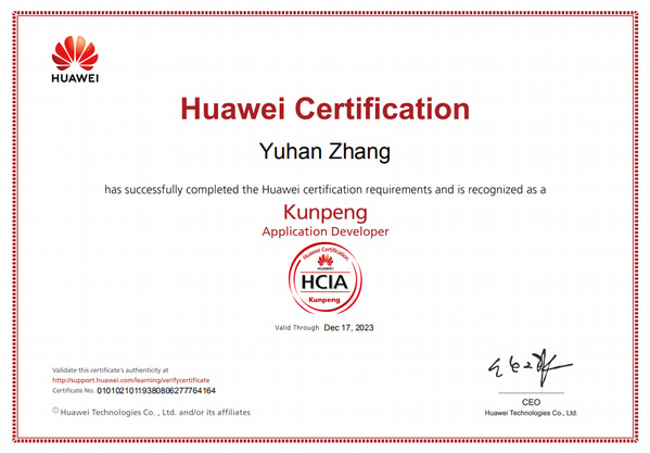 华为鲲鹏HCIA认证证书