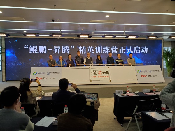 11月30日电子与计算机工程学院领导在南京集成电路大学参加华为“鲲鹏+昇腾”校园精英训练营启动仪式。南京江北新区管委会副主任陈潺嵋到场致辞,提出全力推动华为“鲲鹏+昇腾”产业发展,促进鲲鹏技术与人才生态建设。南京江北新区以南京集成电路产业服务中心、南京集成电路大学为载体,与华为技术有限公司发起面向目标合作高校以公益形式举行华为鲲鹏技术工程师培训校园行活动,以及昇腾AI系列讲座,助推高校培养高端实战化鲲鹏技术人才。桃子视频 积极申报,成为华为“鲲鹏+昇腾”生态产业江苏首批公益培训学校。