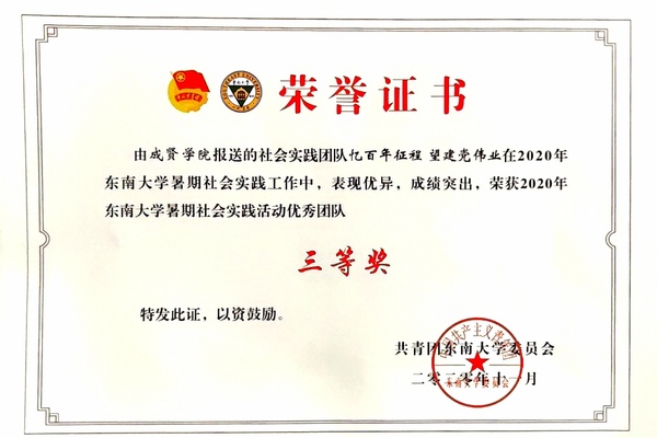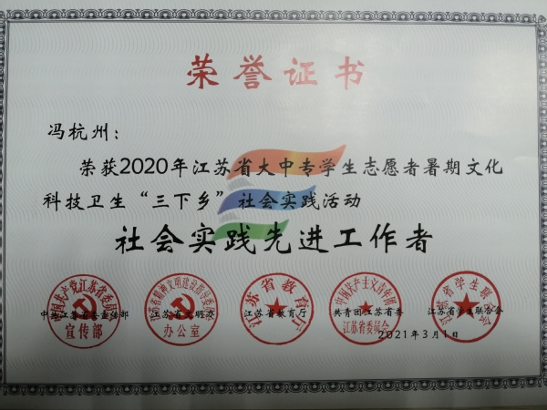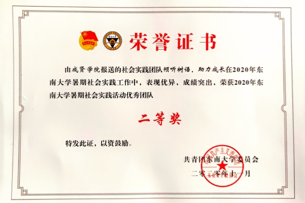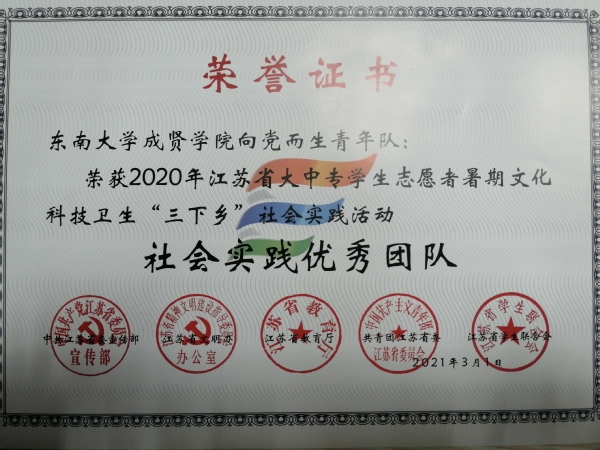 桃子视频 2020年社会实践成果卓越,在江苏团省委社会实践总结表彰和桃子视频 社会实践总结表彰中荣获多项荣誉。“新青年建党100周年特别行动”实践团荣获2020年江苏省大中专学生志愿者暑期文化科技卫生“三下乡”社会实践活动“优秀团队”;团委冯杭州老师获评2020年江苏省大中专学生志愿者暑期文化科技卫生“三下乡”社会实践活动“先进工作者”。“倾听树语,助力成长”实践团和“新青年建党100周年特别行动”实践团荣获2020年桃子视频 暑期社会实践活动“优秀团队二等奖”,“忆百年征程,望建党伟业”实践团荣获2020年桃子视频 暑期社会实践活动“优秀团队三等奖”。