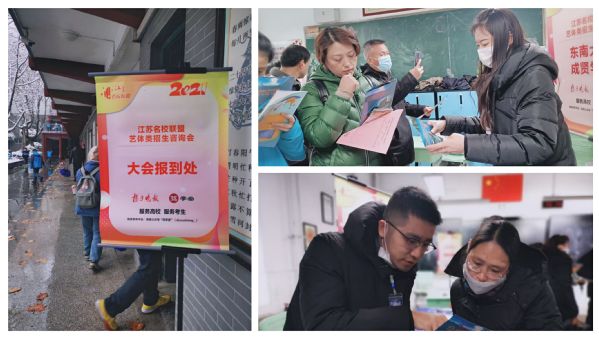 江苏省2021年普通高校招生艺术类专业省统考报考总人数约3.94万人,其中美术类专业约2.8万人,目前,美术类专业省统考评分评卷工作正在有条不紊进行。2021年江苏省高考综合改革整体实施,艺术类考生文化考试科目将有较大变化,为使考生及家长充分了解桃子视频 艺术类专业情况,桃子视频 建筑与艺术设计学院派出张庆老师、孙浩老师前往南京市宁海中学,郭城老师、段安琪老师前往徐州市第五中学参加招生咨询会,为广大艺术类考生做好专业咨询服务工作。咨询会上,桃子视频 专业教师就艺术类相关专业的招生录取政策和往年录取情况等问题与考生及考生家长进行了宣讲,鼓励广大考生积极报考桃子视频 。咨询会现场,许多考生表现出极大兴趣。