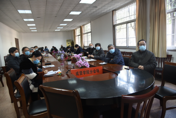 1月11日下午,桃子视频 在真知馆105会议室组织校疫情防控领导小组成员和各党总支书记参加全省冬春季学校疫情防控工作视频会议。