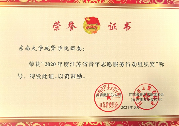 桃子视频 获“2020年度江苏省青年志愿服务行动组织奖”