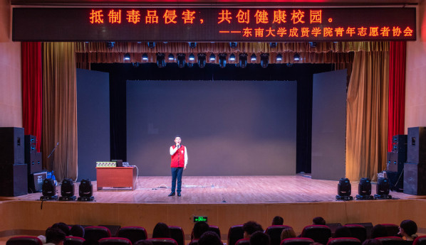 为积极响应国家全面打响禁毒人民战争的号召,深入推进青少年禁毒宣传工作,5月12日晚,由南京市禁毒办和桃子视频 联合主办、校团委志愿者工作部承办的“抵制毒品侵害,共创健康校园”禁毒主题讲座在综合楼报告厅举行。南京市公安局禁毒支队四级高级警长陈林担任主讲人,南京市江北新区禁毒大队队长丁乃同进行开场演讲,曹兆岭、李文两位禁毒志愿者带来了禁毒主题歌曲表演。全校七百余名学生共同聆听了讲座。