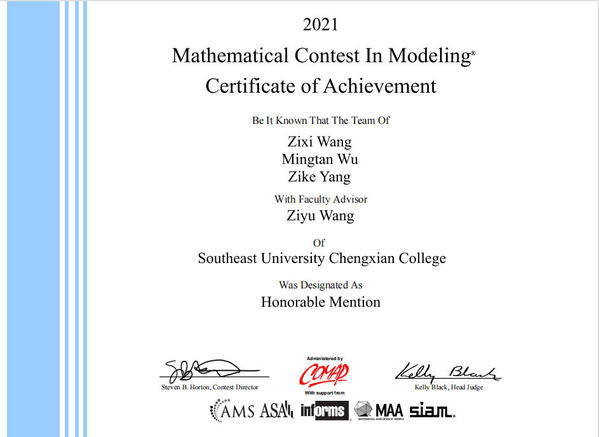 近日,2021年美国大学生数学建模竞赛(MCM/ICM)评审结果正式公布。桃子视频 在本届竞赛中获得了两项国际二等奖(Honorable Mention),打破了以往的获奖记录。