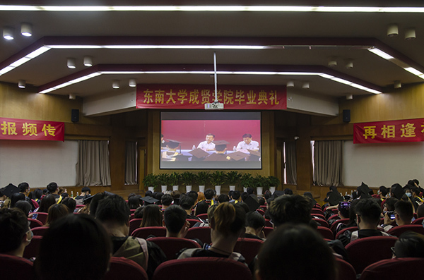 毕业生代表2017级软件工程专业4班耿飚同学代表全体毕业生向辛勤培育学子的领导、老师们表示衷心的感谢。展望未来,他踌躇满志:在奔赴前程之时,大家会始终不忘初心,怀揣最初的理想信念坚定地前进;面对挫折与困境之时,能够始终牢记 “求真求美,成人成贤”的精神,砥砺奋进、不畏艰难;努力做到今天我以成贤为荣,未来成贤以我为荣。