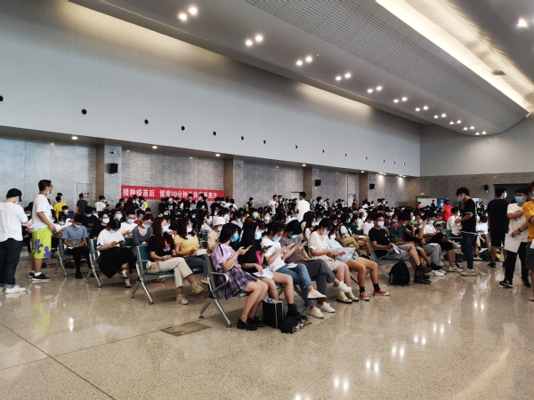 为做好第二针次的疫苗接种工作,学生处、团委、后勤管理处、保卫处协同配合,明确任务分工,制定实施方案,在不影响学生大学英语四、六级考试的情况下,有序完成此次接种工作。本次接种恰逢端午节假期,历时两天的疫苗接种,虽天气炎热,但相关职能部门的领导、老师和学生志愿者们,以高度的责任心和不怕困难的精神,共同高效、快捷地完成了接种工作,各点位工作人员各司其职,接种、留观、返回流程合理,现场秩序井然。