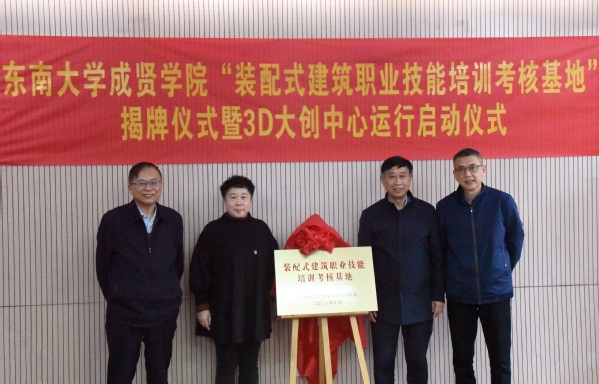 常务副院长许映秋、土木与交通工程学院院长郭正兴共同为“装配式建筑职业技能培训考核基地”揭牌。