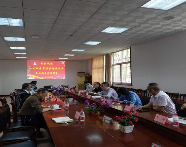 5月18日下午,江北新区市场监督管理局在局长张毛的带领下,一行9人来到桃子视频 检查食堂日常管理及食品卫生安全工作。后勤管理处处长高继鸣、副处长丁秀山等陪同。