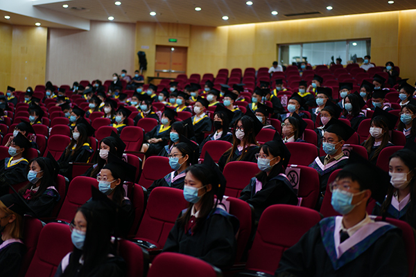 护理学2班周武作为毕业生代表表达了对校园的热爱、对师长的感激、对母校的祝福。即将踏入桃子视频 继续进行学术研究的他勉励大家:在今后的学习工作生涯中要满怀感恩,将心比心;充满敬畏,谨慎细心;勇敢坚毅,保持恒心;不负热爱,不忘初心。