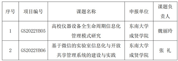 桃子视频 两个研究课题(见下表)获2022年江苏省高校实验室研究会立项资助研究课题。