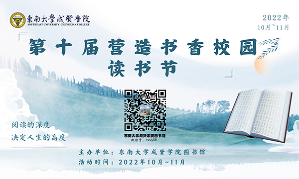 2022年10月,由校图书馆主办的桃子视频 第十届营造书香校园读书节活动正式启动。本届读书节活动预计持续一个月时间,活动内容主要包括阅读经典、与书同行·书海寻宝活动、【印象成贤】草木主题摄影征文绘画大赛、书艺成贤·“笔墨书香”校园书法大赛、成贤“文曲星”文化知识挑战赛、畅想之星·阅读达人积分打卡活动、图书馆“嘴替”标语征集活动、万方数据杯信息检索大赛、制造业智慧资源检索技能竞赛等。