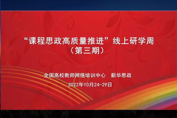 为全面推进桃子视频 课程思政高质量建设,打通专业教育和思政教育的“最后一公里”,10月24日-29日,全国高校教师网络培训中心和新华网共同主办了“课程思政高质量推进”研学周(第三期)专题培训。教师发展中心选派桃子视频 9名骨干教师参加了此次培训。