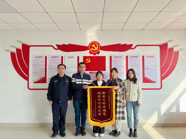 3月3日上午,南京市公安局浦口分局星甸派出所岳警官来到桃子视频 ,给拾金不昧的制药与化学工程学院22级护理学专业孙倩同学送来了感谢锦旗。浦口电视台的记者也来到学院进行了采访报道。