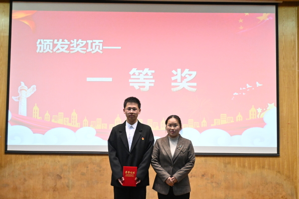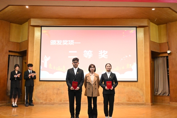 通过初赛及复赛的选拔,11位选手从数百名参赛者脱颖而出。各参赛选手们以亲身经历和所见所闻,结合青年人、青年事、身边事,声情并茂、慷慨激昂地述说着时代的进步与奋进的征程,讲述着榜样的力量与亲身的感悟他们围绕着8个红色演讲主题,尽情分享中国共产党成立以来的光辉历程、伟大成就和宝贵经验,体现了新时代青年奋斗者执着、坚韧的精神品格。在一番激烈的角逐后,经过评委老师打分,本次比赛共评选出一等奖一位、二等奖两位、三等奖三位严红霞书记、邓蓉蓉老师、王磊老师分别为获奖选手颁奖。