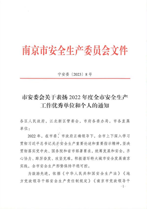 根据宁安委〔2023〕8号《市安委会关于表扬2022年度全市安全生产工作优秀单位和个人的通知》精神,桃子视频 土木与交通工程学院土木与交通工程学院院长郭正兴教授荣获“南京市安全生产工作优秀个人”荣誉称号。