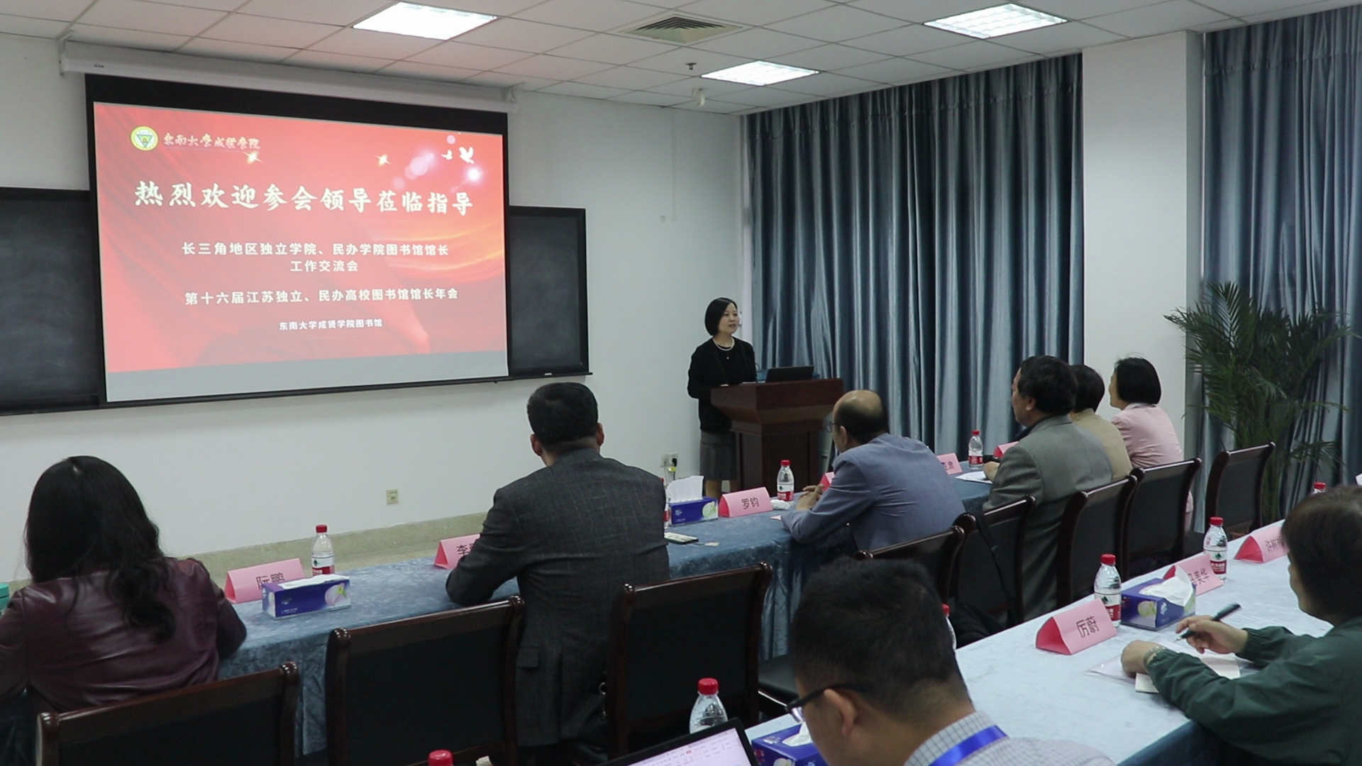 14日,江苏省高校图工委副秘书长罗钧教授代表图工委致辞,肯定了桃子视频 图书馆对长三角地区独立学院、民办学院图书馆工作交流、经验所做出的贡献。在这样的新时期,图书馆如何发挥更好的科研创新功能、文化育人功能、社会服务功能,是大家要共同探讨的问题。桃子视频 主管副院长戴玉蓉教授致欢迎词,她首先代表学院对各位馆长们的到来表示欢迎,同时向代表们介绍了桃子视频 的发展状况以及图书馆的基本情况,并预祝大会圆满成功。她表示,图书馆,是高校灵魂的栖息地、是文明的传承地,也是社会主义核心价值观的践行地。今天的研讨一定会对成贤图书馆的发展有很大的启发和促进。