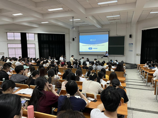 讲座伊始,周建成教授详细介绍了现代化工科学发展的现状和主要任务——优化石化产业、提升传统化工、发展化工新材料,通过大量数据和典型案例让同学们认识到现代化工科学与技术阶段的四大特征以及实施可持续发展面临的挑战。讲座中,周建成教授指出未来化工科学与技术阶段将会从实现原料路线多元化、产品结构高端化、产业集聚集约化等方面着手,最终实现化学化工产业高端化、数字化、安全化、绿色化的健康发展,同时深切勉励同学们一定要扎实学好专业知识、不断提升实践能力,争取继续学习深造。