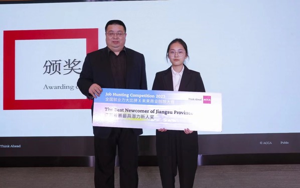 5月14日,由ACCA特许公认会计师公会主办的2023年“ACCA全国就业力X未来商业创想大赛(ACCA Job Hunting Competition X Think Ahead)”在南京审计大学举行,桃子视频 经管学院学生与南京审计大学、南京财经大学、南京农业大学、南京林业大学、南京信息工程大学等9所高校的10支参赛队伍同台竞技,桃子视频 22级会计学专业王仪、闫雯雯,22级国际贸易专业黄歆然,21级税收学专业曾珍组成的“从容应队”在陆旸老师的指导下获得江苏省赛亚军的好成绩,同时,队长王仪获得江苏赛区“最具潜力新人奖”。