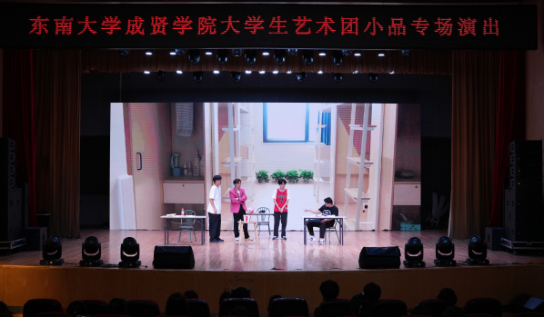 5月19日晚,由校团委、学生处、保卫处主办,大学生艺术指导中心话剧团演出的反诈教育小品专场演出在综合楼报告厅举行。团委书记、学生处副处长潘明烽,泰山街道辖区派出所民警陆建斌、保卫处老师及全校600余名学生生共同观看了此次演出。