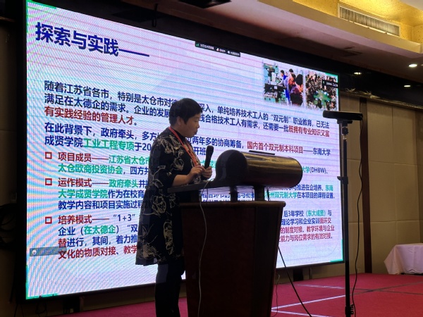 许院长在会上做了校企协同育人主题发言,她以《多方协同育人模式探索与实践—中国式本科双元制》为主题,强调了多方协同育人是新工科建设的重要支撑,此模式可有效推进和完善新工科趋势下的产教融合、产学融合、校企合作等协同育人体制改革;许院长在会议中提出,桃子视频 作为桃子视频 用全新办学理念和运行模式举办的应用型大学,一直以来积极探索学校与行业、企业以及政府等联合办学合作模式,于2017年开始桃子视频 就与德国巴登符腾堡双元制应用科学大学、江苏太仓欧商投资协会、江苏省太仓市人民政府合作,探索开展产教融合多方协同育人背景下的应用型人才培养模式改革“本科双元制”,构建政府、行业、企业、学校育人共同体,把“工匠精神”培养融入教学全过程,让学生“毕业即就业”,实现了学校到职场的无缝衔接,成为高校应用型人才培养模式改革的成功案例。