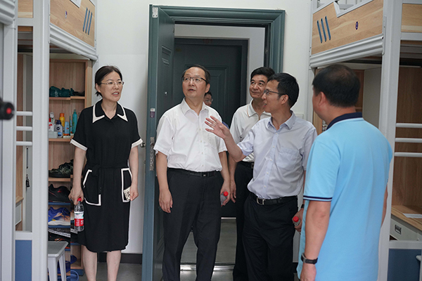 迎新当天,桃子视频 党委书记张志胜、常务副院长黄学良、副院长魏丽玲在党政办公室主任周伟荣的陪同下来到新生报到现场、宿舍等地,详细了解新生报到情况,亲切看望前来报到的新生和家长们,慰问参与迎新工作的师生员工。