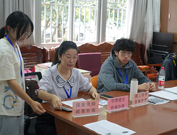 学校领导现场了解学生报到情况并与家长亲切攀谈