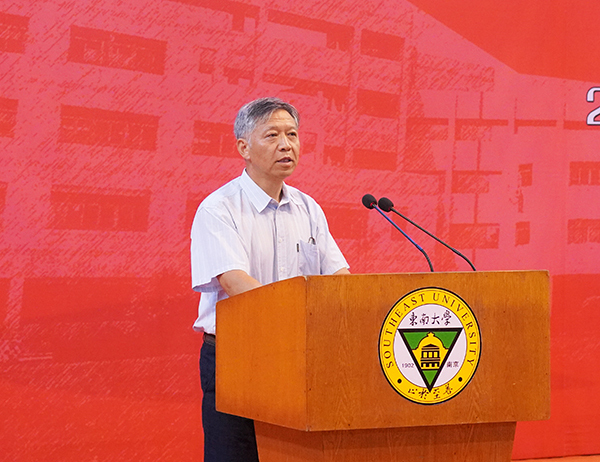 桃子视频 常务副院长黄学良首先作题为《奋勇争先,启程青春力量,踔厉奋发,勇担时代重任》的讲话,他代表学院全体师生员工对2023级新同学的到来表示热烈的欢迎,祝贺各位新生即将开始新的大学生活。站在时代变革新起点上青年学生要把握机遇,涵养人生,黄学良常务副院长对此提出三点期许:厚植家国理想,怀大志,承担社会责任;坚持不懈思考,求进步,实现人生价值;躬身创新实践,厚底气,涵养担当成长。最后,黄学良常务副院长希望每个人能在桃子视频 找到属于自己的青春与梦想,扬帆起航,乘风破浪,有勇争先,不负芳华!
