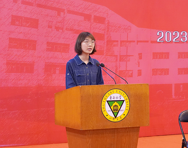 在校生代表2020级软件工程专业黄嘉嘉同学与新生代表2023级护理学专业陈瑾同学分别发言,她们分别表达对新生的热烈欢迎和对大学生活的美好憧憬。