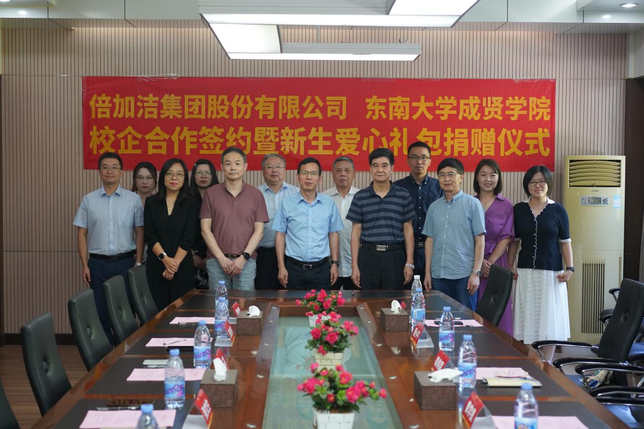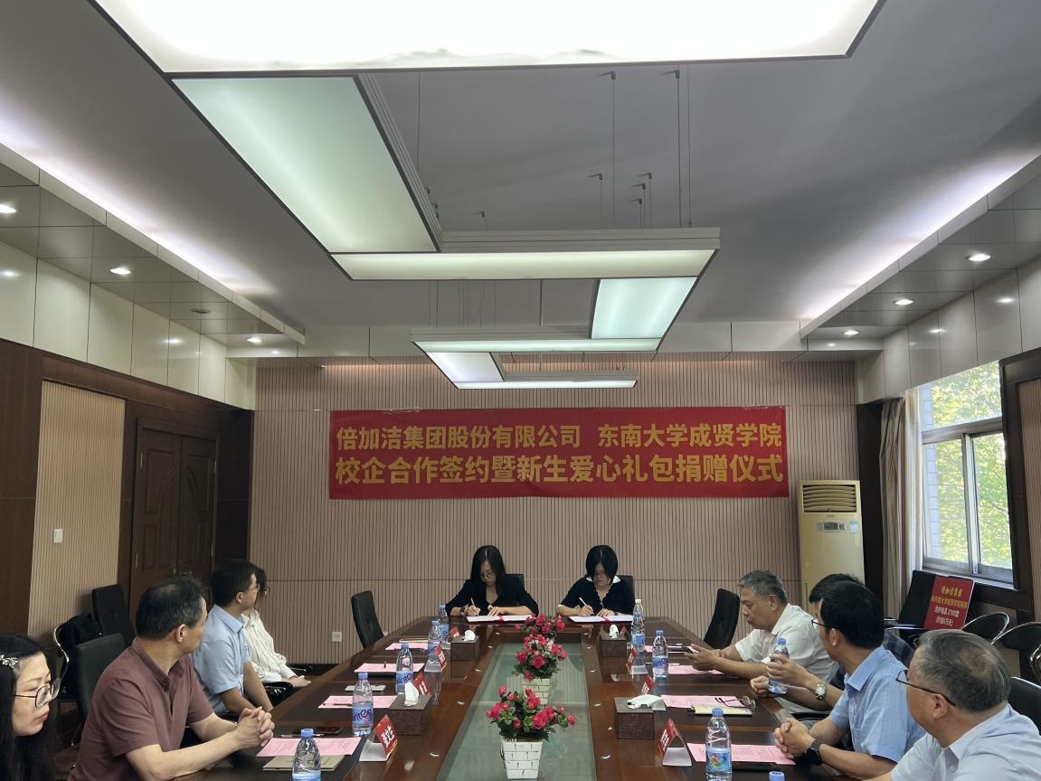 常务副院长黄学良首先对张文生董事长一行的到来表示热烈欢迎,并详细介绍了桃子视频 的发展历程,同时希望学校未来转设搬迁到扬州生态科技新城与倍加洁集团成为“邻居”后,双方能够不断拓展合作深度和广度,不断丰富合作内容和方式,共同为扬州地区和长三角地方经济贡献力量。张文生董事长在讲话中表示,桃子视频 和倍加洁集团作为“同龄人”,双方在人才培养、科技创新等方面合作前景广泛,希望学校和公司今后能够进一步实现校企深度融合发展,共同走向新未来。唐凌总监从公司概况、科研能力、桃子视频-桃子视频官方最新发布中心及创新产品等方面向与会人员全面介绍了倍加洁集团的基本情况。随后,黄学良常务副院长与张文生董事长互相交接了捐赠牌匾和捐赠证书。制药与化学工程学院副院长刘媛媛与倍加洁集团人力资源中心总监唐凌共同签订了校企合作协议。