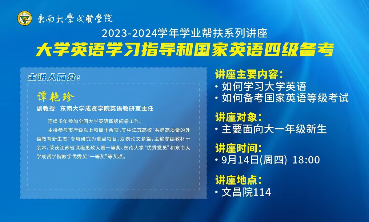 学业帮-辅系列讲座之“大学英语学习指导和国家英语四级备考”