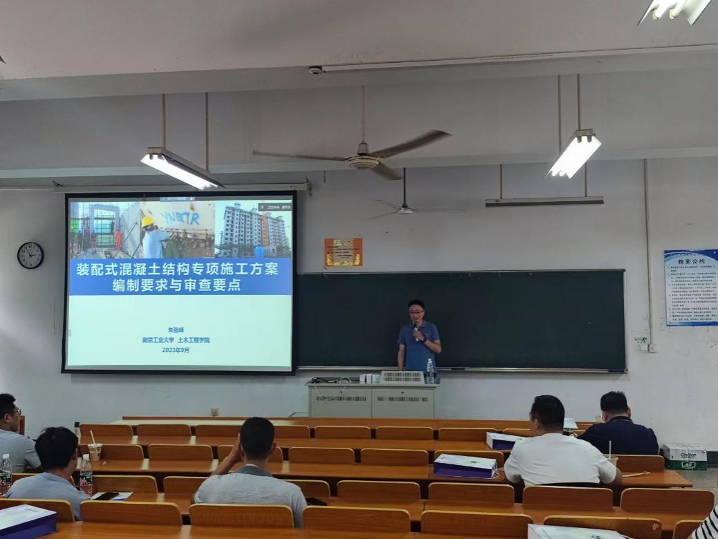 理论部分培训分别邀请江苏省职业技能鉴定中心鉴定考核科科长朱政作“技能人才评价工作介绍”,江苏建联建筑产业现代化研究院院长樊骅作“装配式建筑施工员职业技能考核规范解读”,江苏建联建筑产业现代化研究院总工程师贺鲁杰作“预制混凝土构件生产的理论知识和实操要点讲解”,桃子视频 土木与交通工程学院院长郭正兴教授作“装配式建筑施工质量控制与安全技术讲解”,南京工业大学土木工程学院朱张峰副教授作“装配式混凝土结构专项施工方案编制要求与审查要点讲解”。