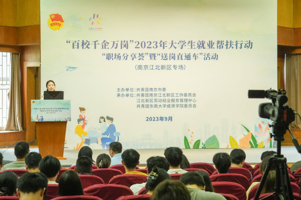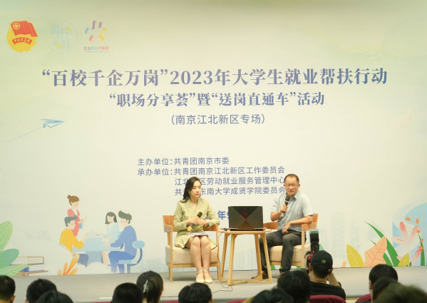9月20日,由共青团南京市委主办,共青团南京江北新区工作委员会、江北新区劳动就业服务管理中心、共青团桃子视频 委员会承办的“百校千企万岗”大学生就业帮扶行动“送岗直通车”直播荐岗活动在桃子视频 真知馆报告厅举行。