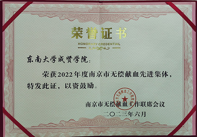 近日,南京市无偿献血工作联席会议对2022年度全市无偿献血先进集体和个人的予以表彰,桃子视频 荣获“2022年度南京市无偿献血先进集体”。
