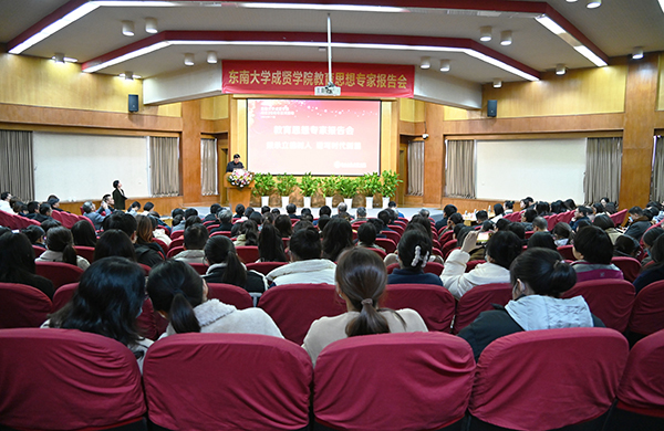 冯建明主任以《未来的大学与大学的未来——兼及东大与成贤》为题做报告,就未来大学的多元模式、数智化、国际化及全人化等方面作了鞭辟入里的分析。他指出,我们必须重塑教学内容、教学方法和培养重心,顺势而变。随后冯主任结合桃子视频 的历史方位、愿景目标、发展战略,对桃子视频 的发展思路和重点任务作出富有远见的阐述。最后冯主任描绘了学校未来发展的美好蓝图并提出希望和鼓励。