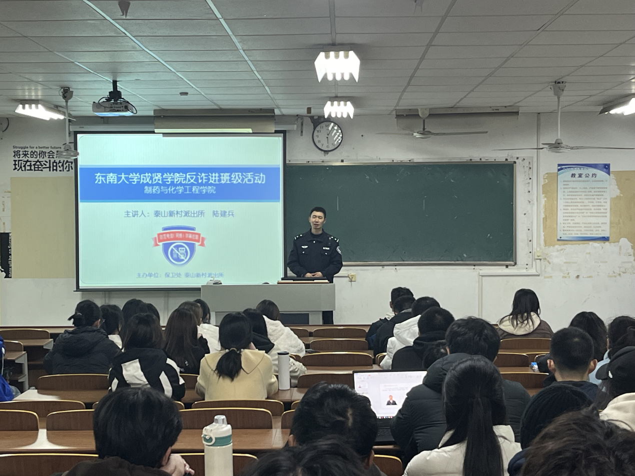 泰山新村派出所陆建兵警官给新生开展防诈骗安全教育