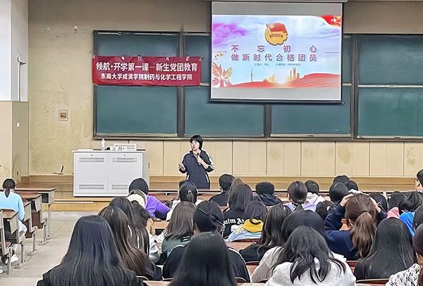 10月15日,学院举办领航·开学第一课——新生党团教育,制药与化学工程学院党总支书记周继荣、分团委书记刘庆分别以《用信仰点亮人生——新生入党启蒙教育》《不忘初心——做新时代合格团员》为主题对新生进行思想教育,要求同学们提升政治觉悟,端正入党动机,加强对党团知识的学习和积累,铸牢永远跟党走的思想根基和行动自觉,为实现中华民族伟大复兴的中国梦奉献力量。