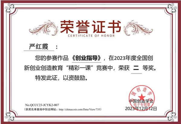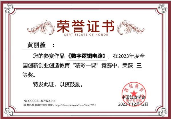 近日,由中国创造学会主办,中国创造学会创新创业创造专业委员会承办的2023年度全国创新创业创造教育“精彩一课”决赛圆满落幕。桃子视频 建筑与艺术学院江晶老师参赛作品《大学生创新创业教育》荣获一等奖,机械与电气工程学院严红霞老师参赛作品《创业指导》荣获二等奖,电子与计算机工程学院黄丽薇老师参赛作品《数字逻辑电路》荣获三等奖。
