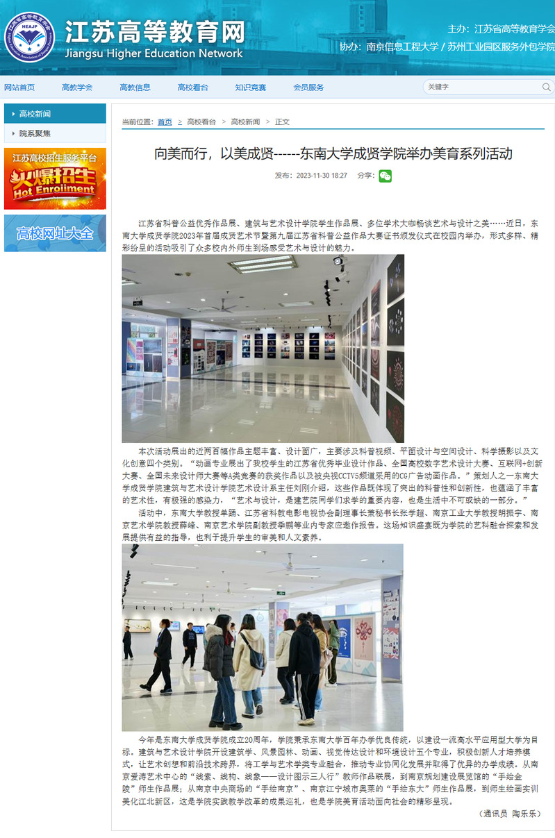 【江苏高等教育网】向美而行,以美成贤——桃子视频 举办美育系列活动