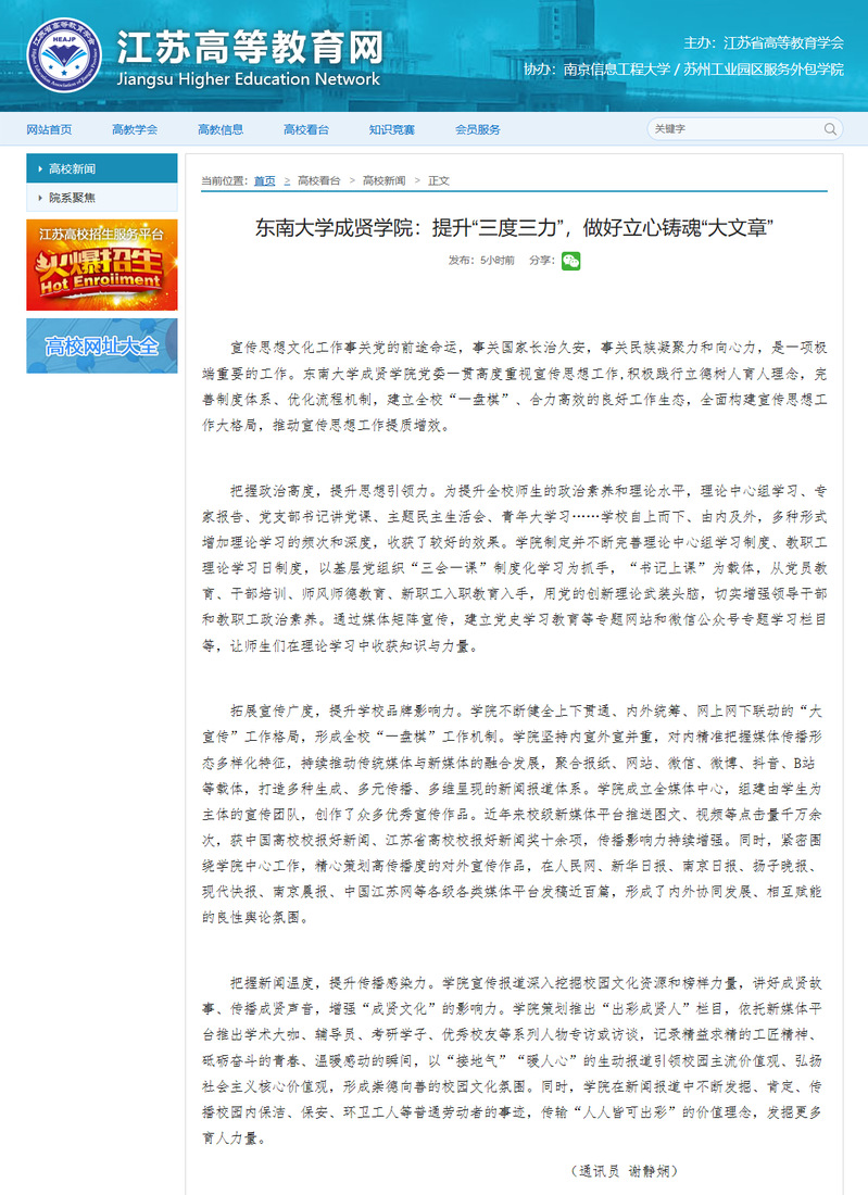 【江苏高等教育网】桃子视频 :提升“三度三力”,做好立心铸魂“大文章”