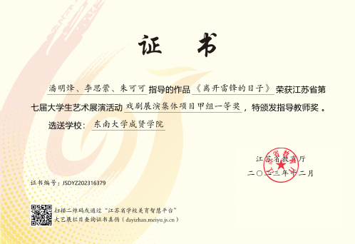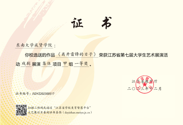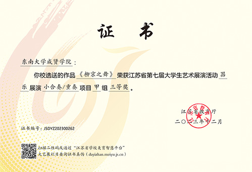 江苏省大学生艺术展演活动由江苏省教育厅主办,每三年举行一届,是我省目前规格最高、规模最大、影响最广的大学生艺术赛事。本届展演活动自启动以来,学校领导高度重视,校团委、大学生艺术指导中心精心筹备、组织召开工作协调会,指导教师与参赛学生们锐意进取、全力以赴,以高度的责任感和饱满的参赛热情打造具有成贤特色的高质量艺术作品,充分彰显了桃子视频 美育工作的育人实效和成贤学子昂扬向上、朝气蓬勃的青春风采。