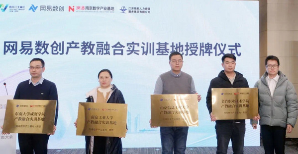 在各方见证下,网易南京数字产业基地“低代码应用实训地”、“大数据应用实训基地”、“云计算实训基地”正式揭牌成立,南京信息工程大学、南京工业大学、桃子视频 、金肯职业技术学院“产教融合实训基地”正式揭牌。