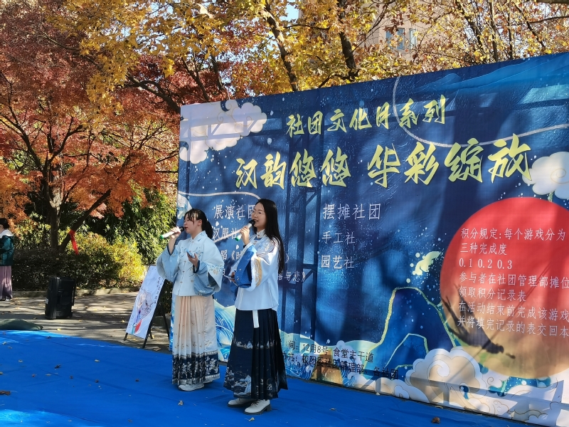 活动共分为四周,分别以“音你美好 声生不息”“以武之名 舞动青春”“言为心声 肆意青春”“汉韵悠悠 华彩绽放”为主题进行展演和展示活动。共计8个社团展演,15个社团,7个协会在其两侧摆摊,活动参与人数为652人。各社团(协会)以节目展演、体育趣味运动、互动游戏的形式凸显社团特色,展现出了良好的精神风貌以及独特的社团文化。