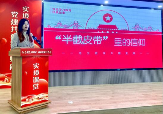 随后,我院党总支青年委员潘天娇以“半截皮带的信仰”为主题,生动讲述了长征途中红31军93师274团“半截皮带”的故事,红军战士们宁肯忍饥挨饿,也要将半截皮带留下来,带着它去延安见毛主席。现场观众反响热烈,深刻体会到革命理想高于天、铁心跟党走的坚定信仰。