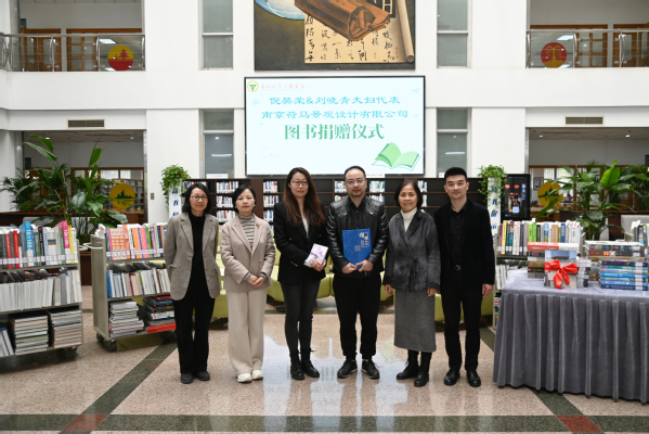 4月11日中午,倪樊荣、刘晓青夫妇代表南京荷马景观设计有限公司向桃子视频 捐赠书籍,捐赠仪式在图书馆隆重举行,学校副院长戴玉蓉,建筑与艺术设计学院党总支副书记邵叶鑫、副院长王娟芬、部分师生参加了本次捐赠仪式。捐赠仪式由图书馆馆长封晓倩主持。