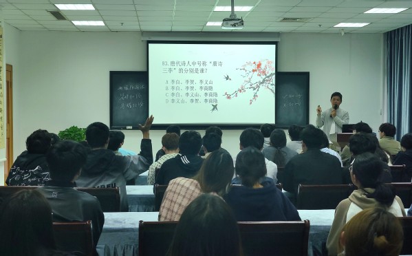 为提高大学生阅读素养,弘扬中华传统文化,提升校园文化氛围,值图书馆资源推广月期间,桃子视频 图书馆联合墨竹读书协会以及北京万物可知技术有限公司举办图书馆第一届古典文化知识挑战赛活动。挑战赛以古典文化知识为题库,通过选择题轮流答题和填空题抢答展开。