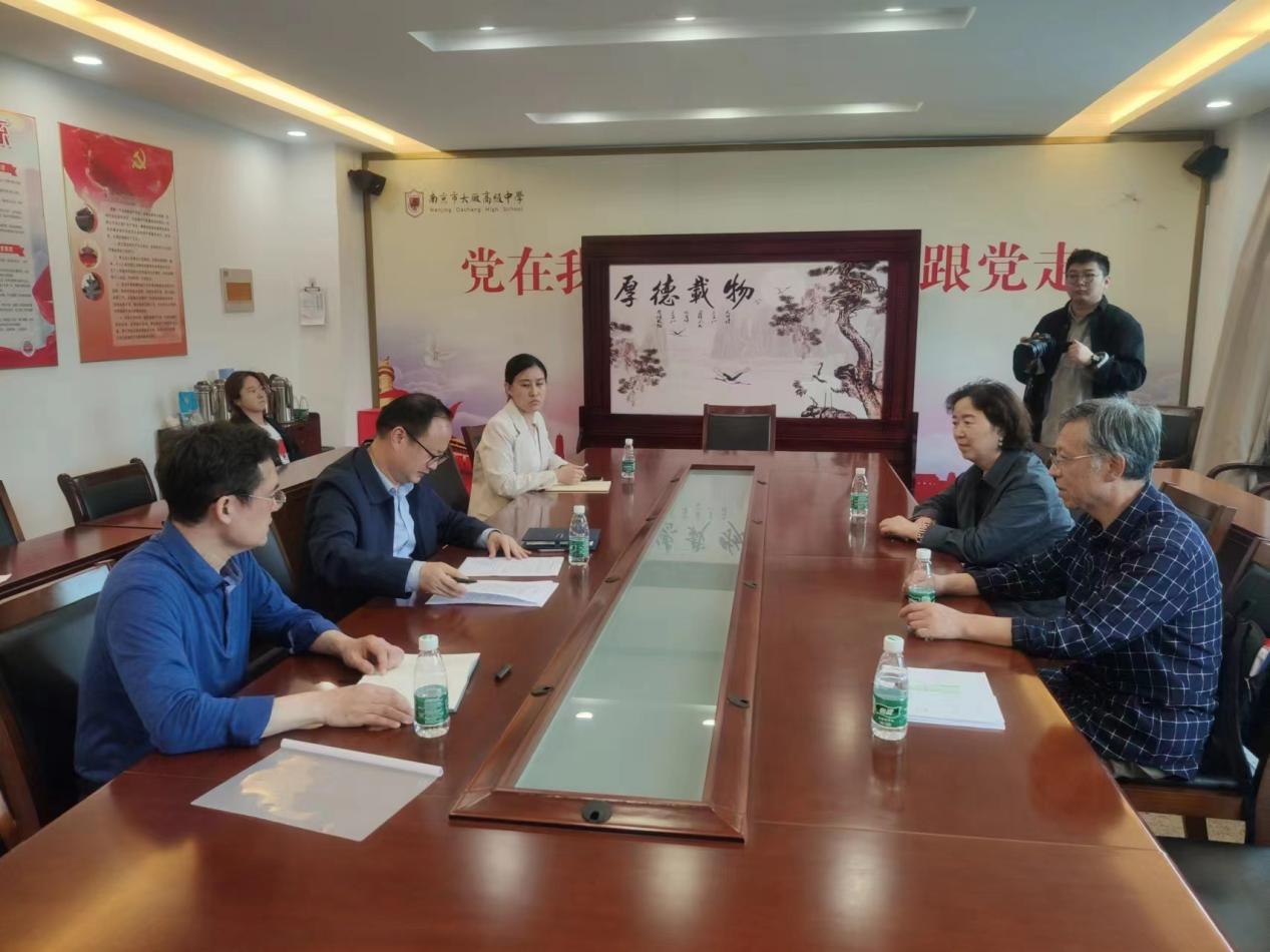考察第一站,基础部部长刘须明、副部长张福保、综合办公室主任房振伟一行来到南京市大厂高级中学实地考察,受到该校领导的热烈欢迎,并与大厂高级中学康红兵校长,张言松副校长进行了热情友好的交流。康校长介绍了该校的师资和招生规模,学校的发展规划和前景,以及每年接收实习生情况。张福保副部长介绍了基础部申报新专业的培养目标,并与校领导探讨了未来中学发展规模和中学师资的需求情况。刘须明部长高度赞扬和肯定了康校长在教学和科研方面取得的突出成就,希望能就英语教学和英语课程思政等方面与大厂高级中学老师合作,推进英语课程思政的研究。双方还就学科发展、人才培养等其他问题进行了深入探讨,希望能进行多方位的深度合作。