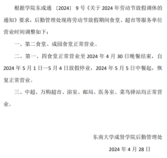 关于学校劳动节放假校内委托服务单位营业时间调整的通知