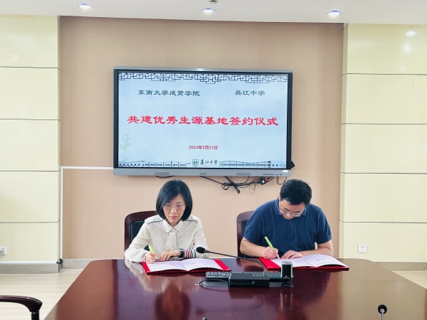 与吴江中学签订《桃子视频 优秀生源基地建设协议书》