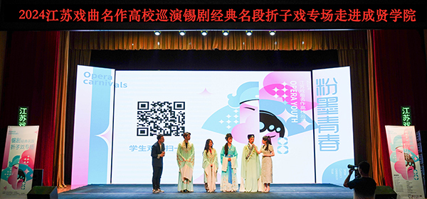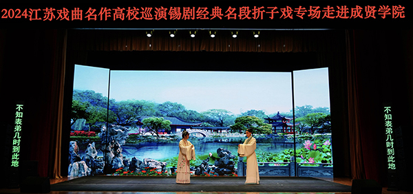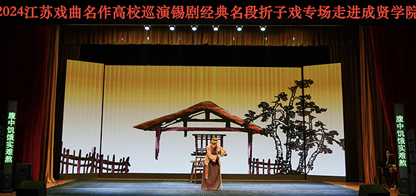 5月22日晚,由省委宣传部、省教育厅主办,校团委大学生艺术指导中心承办,无锡市锡剧院创排演出的“粉墨青春”2024江苏戏曲名作高校巡演锡剧经典名段折子戏专场在桃子视频 综合楼报告厅举办。桃子视频 600余名师生共同欣赏了本次精彩演出。