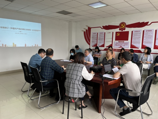 周继荣书记首先引用习近平总书记的重要讲话,重点阐述了党纪学习的重要性、必要性和时代性,结合当前教育教学工作形势,带领全体教职工和学生党员逐章逐条、深入浅出地解读了《中国共产党纪律处分条例》的修订背景、主旨要义和全文内容。周书记强调,所有党员要自觉接受党纪学习教育淬炼洗礼,在用心“学纪”中锤炼党性,在准确“知纪”中校正言行,在对标“明纪”中自警自省,在严格“守纪”中担当作为,切实将学习教育成果转化为忠诚干净担当的实际行动。